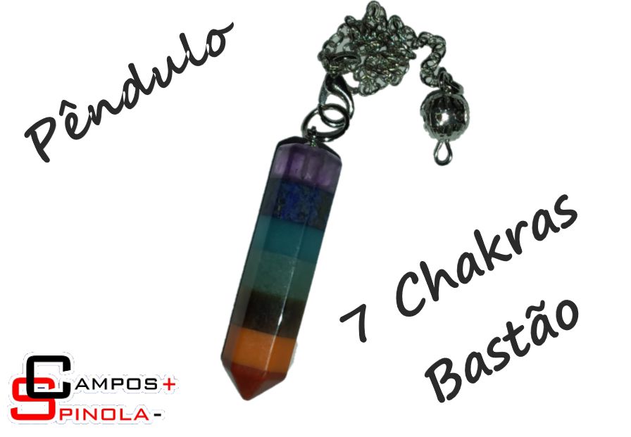 Pêndulo 7 Chakras em Pedra lapidado, modelo Bastão.